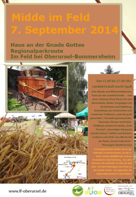 Jedes Jahr am ersten Sonntag im September findet das Regionalpark-Rundroutenfest statt. Seit 2014 ist der LFO mit einer eigenen Rund-Routen-Station beteiligt – die Gnade Gottes im Bommersheimer Feld.
